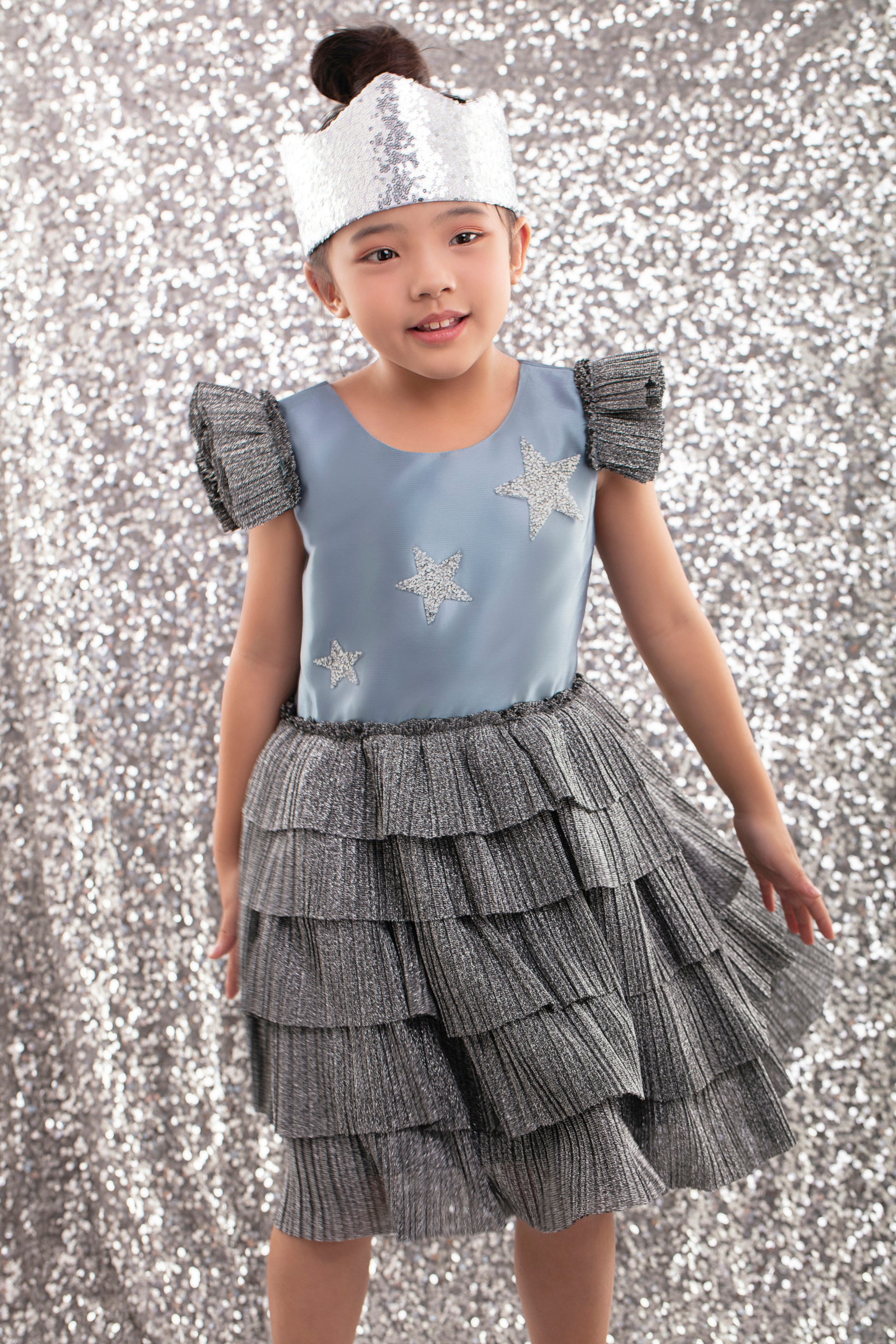 - Sparkling sequin star details on the bodice